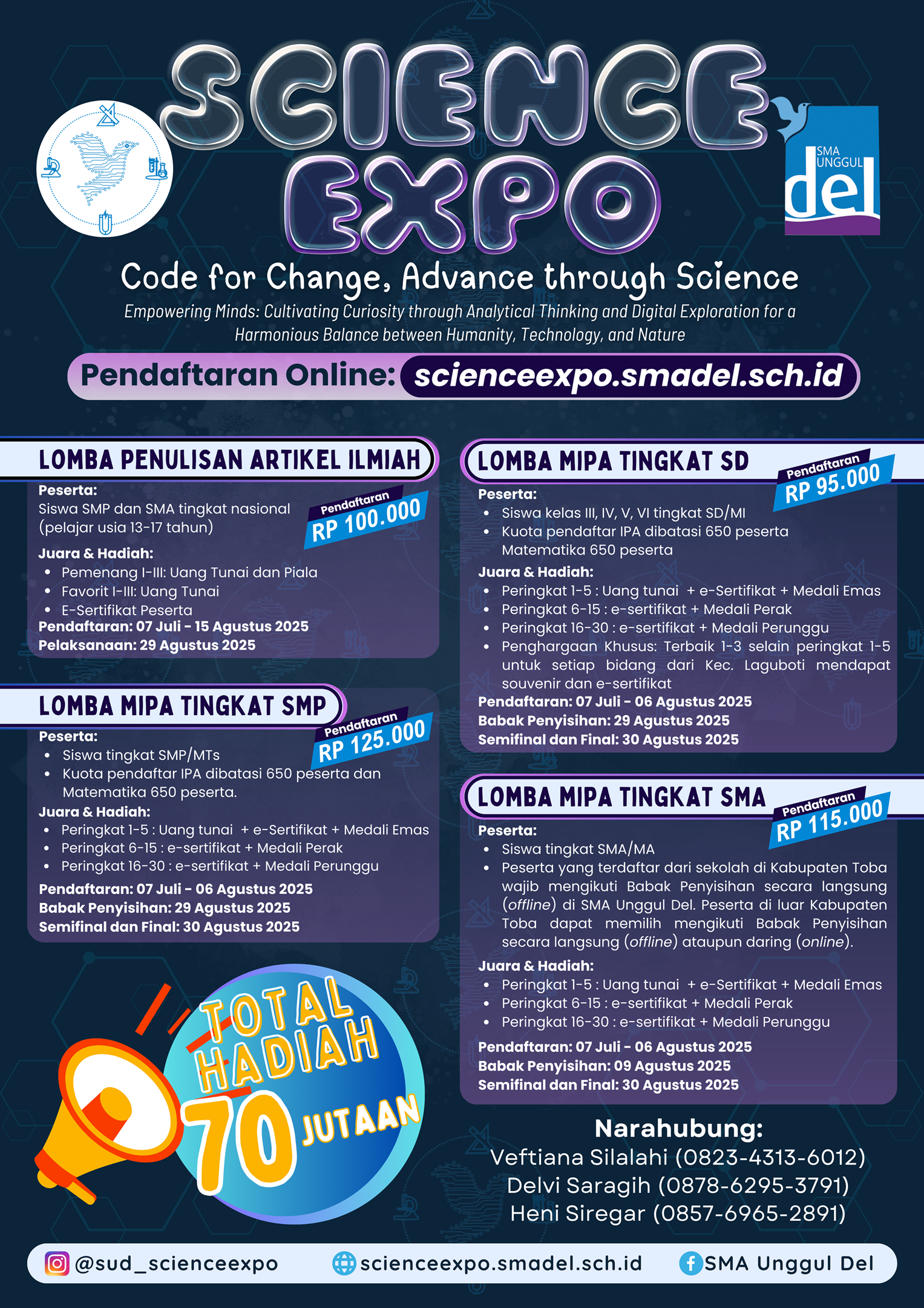 Penasaran ga sih, apa saja kegiatan 𝐒𝐜𝐢𝐞𝐧𝐜𝐞 𝐄𝐱𝐩𝐨 𝟐𝟎𝟐𝟓? Terus, kegiatan apa saja yang bisa kamu ikuti? Atau kamu bingung mempersiapkan diri di bidang lomba mana?🤔